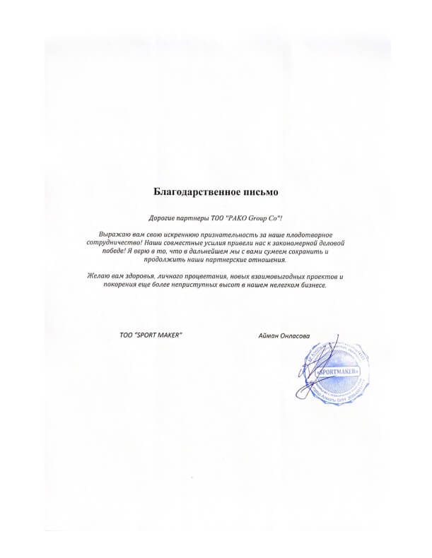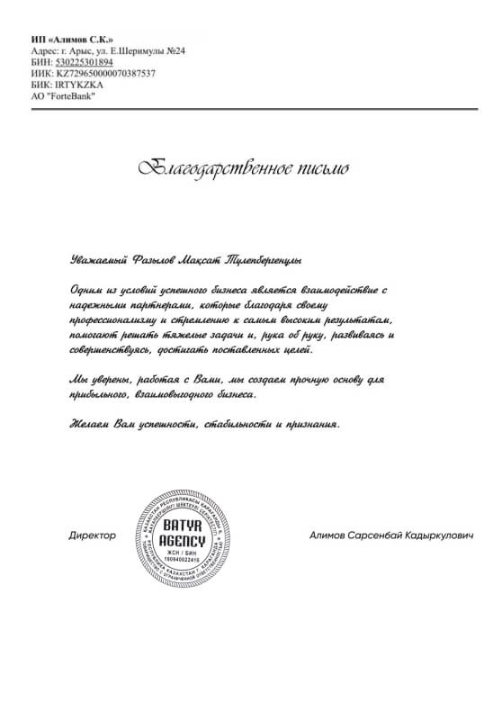 Благодарственные письма